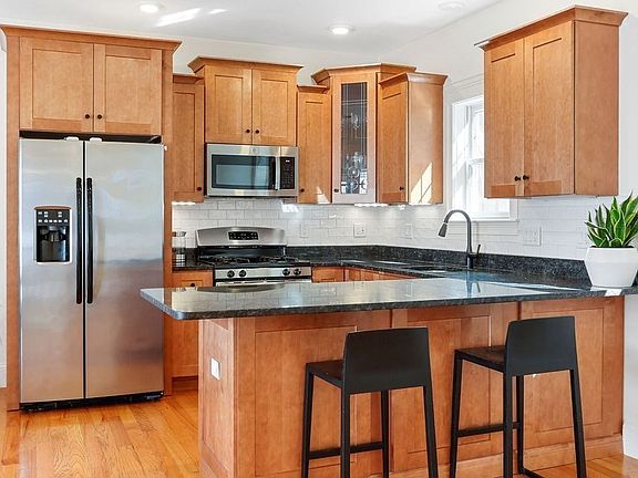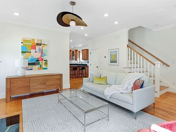 Elegant townhome constructed in 2016 with 3 levels of living. The first level has an open concept featuring a living room with gas fireplace, 9-foot ceilings adorned with crown molding. The eat-in kitchen is equipped with stainless steel appliances with gas cooking, granite countertops, & ample cabinet space. Off the designated dining space, step outside to the private patio, perfect for relaxation & entertaining. Upstairs, the second level has two bedrooms with ensuite bathrooms or a versatile home office. The third floor is dedicated to the main suite, featuring a walk-in closet & en suite bathroom with built-in drawers. Enjoy the comforts of central air & in-unit laundry. The full basement offers loads of storage, the potential to finish & includes a walk-out for easy access. Smarthome ready, equipped with ethernet connections throughout. A designated deeded parking spot included! Conveniently located near Forest Hills Station, several shops & restaurants, & Roslindale Village.