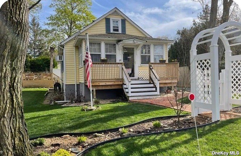 Location, Location, Location! This charming cape style home with too many updates to list, is one street away from the Long Island Sound with partial water views from the front deck! The beautifully manicured yard includes an original handmade 1850's brick walk way, 3 new entertainment decks, a long drive way for ample parking, new roof on the garage, and a new above ground oil tank. New gutters recently installed. Motion and security lights installed around the property. The interior boasts new stainless steel appliances, ceiling fans, quartz countertops, new windows and new laminate floor on the main floor. No flood insurance is needed. Very low taxes! Come enjoy the proximity to the North Fork of Long Island with wineries and farm stands. This home is minutes away from the Ferry at Port Jefferson Village with access to Connecticut/ New England.