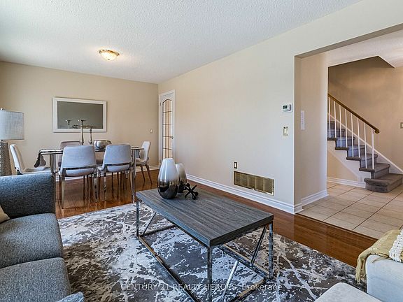 Out of a storybook, this beautiful 3 bedrooms detached home is located on a Cul-de-sac and is backing onto a parkland. Welcoming Foyer Area. Features open staircase, Huge Living& Dining, Large Eat-in- Kitchen with new quartz counters & Ceramic Backsplash. Open Concept Breakfast area with W/O to wooden deck and backyard with open views of Parkland. Formal family room with Fireplace and overlooking Backyard. Gleaming Hardwood Floor on the main floor. Brand new flooring on upper level & Staircase. 3 Spacious Bedrooms, master with B/I Closet and 2Pc Ensuite.