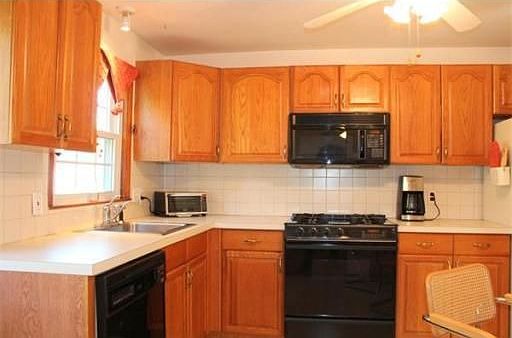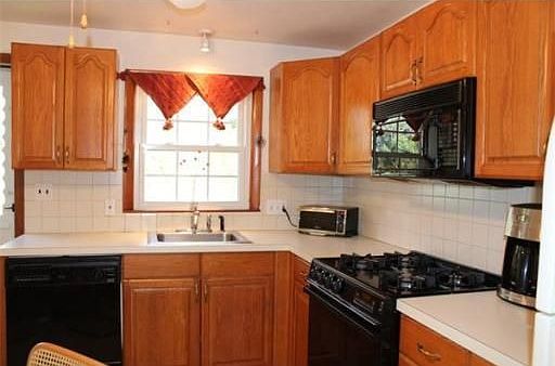Outstanding home in terrific neighborhood setting! Features an updated Oak kitchen w/gas cooking and door to spacious deck overlooking the backyard. Bright & Beautiful fireplaced living room with bay window and hardwood floors, Formal dining room w/hardwood, New tile floors in bath, All bedrooms have Hardwood floors!, *** Not your typical split as the Lower level is loaded with Full windows and has tons of natural light - Awesome floor to ceiling brick fireplace***, New heating system & H2o!