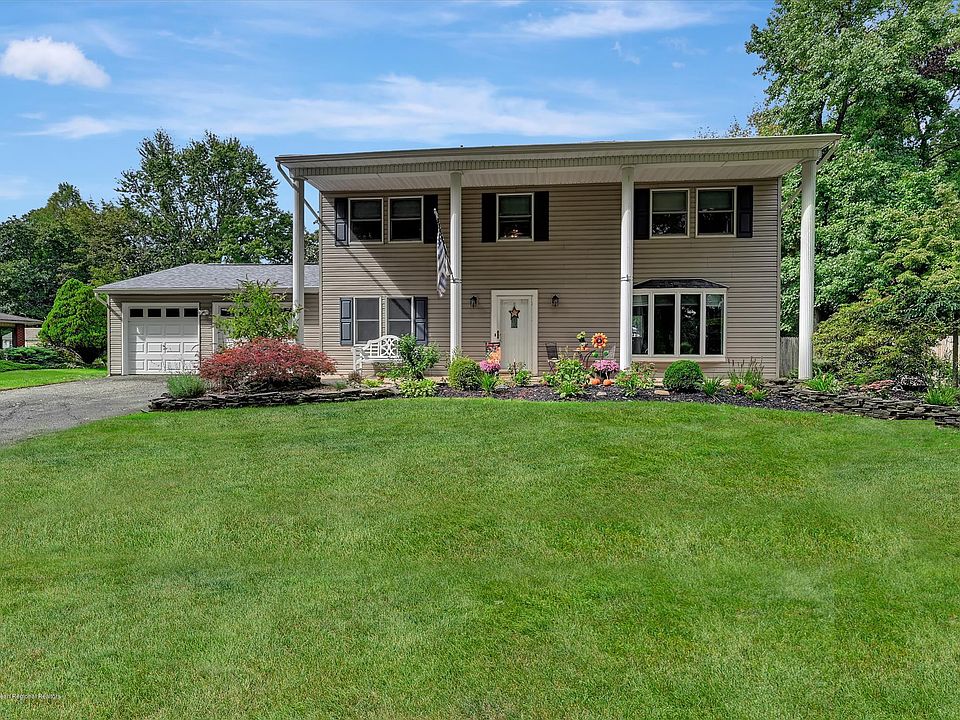 Pristine 4 BR 2.5 Bath Colonial in sought after East Freehold Township. Features include Newer Driveway. Paver walkway,Wood flooring through out most of first floor into the hallway upstairs and under bedroom carpets. Large living room with a Wood burning Fireplace. Formal Dining room with a Bay window (Currently being used as Living Room Area). Spacious eat in Kitchen with custom cabinetry ,tiled back splash with granite counter tops .Master Bedroom w/Full Bath and walk in closet. Finished Basement Paradise backyard w/paver patio and in ground salt water pool. Large level Back yard. Roof 3 Years young Minutes from NYC transportation & shopping!