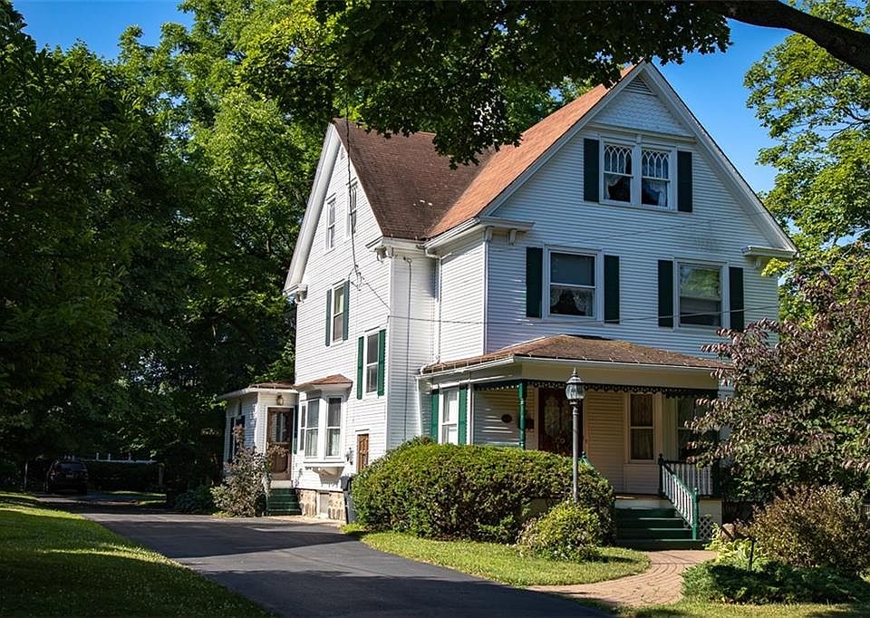 Lovely Colonial in the Village within walking distance to Main Street! Beautiful foyer with original woodwork throughout the home, hardwood floors, stained glass window, living room with gas fireplace, formal dining room, 1st floor laundry, updated kitchen with sliding glass door to deck and private backyard, including a detached 2 car garage, in-ground swimming pool with 3 level composition deck, pool house with kitchen, outdoor built-in gas grill. Don't pass this beautiful home & property by!