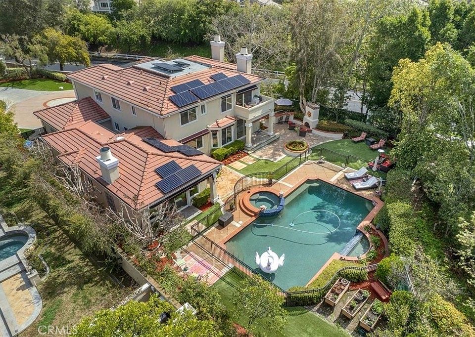 Located in the exclusive, guard gated community of The Greens in Coto de Caza, this 5 bedroom, 4 1/2 bath plus loft home is a rare find. Upon arriving, you are welcomed by the long, private drive lined with tall hedges before finding this hidden gem. Get ready to fall in love with this gorgeous home that has much to boast about including an attached casita with separate entry, a salt water pool and spa, outdoor fireplace, instant hot water system, owned solar power system, an oversized driveway that can park approximately twelve cars and so much more! The newly upgraded kitchen includes a modern and elegant touch with Bianco Superior premium quartzite countertops, a seashell backsplash, a 48” Z-line Autograph Edition 7 burner cooktop, a 48” Italian Futuro Futurehood with an elegant sleek design making this a chefs dream. The large living room with fireplace and z wave smart light provides ample space for entertaining and enjoyment. The one bedroom attached casita includes, a living room, fireplace, built in desk, sky light and sliding door with access to the expansive back yard. Without many neighbors surrounding you, you will enjoy the serene outdoor grounds with a sparkling salt water pool with waterfall and spa, cozy fire pit, built in bar b que and outdoor speakers for endless opportunities for alfresco living! As you traverse back into the home into the upstairs luxurious master suite, you will discover a spacious living area along with an oversized walk in closet, soaking tub, spacious shower and his and her vanities with ample mirrors. The upstairs living also includes an additional bedroom suite with private bath and walk in closet, a large open loft with built-ins, an additional bedroom with a large closet and bathroom with shower in tub as well as an office that can be also used as a guest room. The outdoor lights, garage, dishwasher, pool and living room are all controlled through the smart home set up which includes the Ring doorbell and Nest thermostats. The roof has been updated with steal wires on all vents to prevent unwanted critters from entry. This home has been newly painted creating a bright, inviting space for the next fortunate buyer to make this property a place to truly call home!