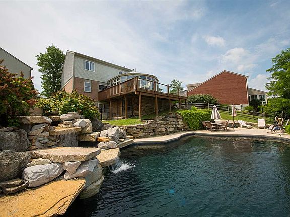 Gorgeous Views of the Cincinnati Skyline! Enjoy your Backyard Oasis with the in-ground gunite pool - Complete with Waterfall, Rock Formations, Stamped Concrete, Hot Tub, Decking, 3 Season Room & More! There is nothing to do but Move In*Fresh Paint*New Carpet*Finished Walkout Basement*You will Fall in Love with the Gorgeous Setting of this Custom Home*