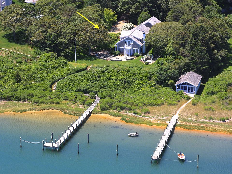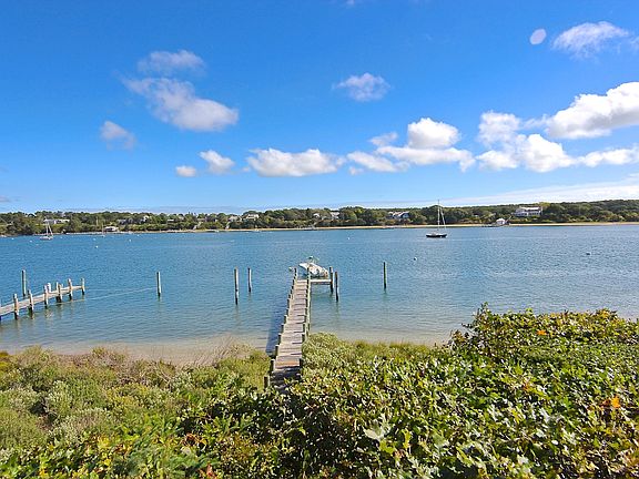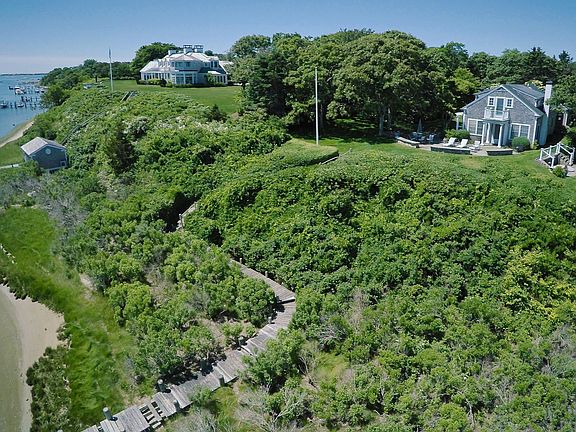 Located on exclusive Ocean View Avenue, this custom contemporary home offers panoramic views of Edgartown Harbor and Chappaquiddick Island. The residence features an open modern kitchen with breakfast bar, dining area and an inviting living room, all with water views. The second floor master suite features a private bath and balcony overlooking the Harbor. There is an additional bedroom suite on the second floor and the remaining two bedrooms on first floor. Complimenting this fine property is an attached garage, water facing patio for lounging and entertaining, beautiful landscaped gardens surrounding the home, a terrace with spa and a stone stairway leading to a private dock.