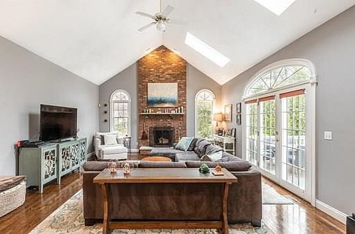 - Fam Dscrp: Flooring - Hardwood, Skylight, Ceiling - Cathedral, Ceiling Fan(s), French Doors, Fireplace, Open Floor Plan, Deck - Exterior, Exterior Access