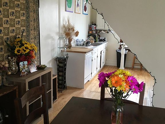 Gorgeous downtown, 2 bedroom apartment with two floors of living space. One floor is home to a nice kitchen with a dishwasher, gas stove, and disposal, as well as a lovely dining room or sitting room. On the second floor, you'll find a huge living room, both bedrooms, and a full bathroom with a usable skylight. The space has original hardwood floors, two private porches, lots of natural light, and Rinnai heaters. Gas heat, gas hot water, washer and dryer in building, off-street parking for two cars. Available June 15th; $1975 plus utilities. Tenant is responsible for heat, electric, water and sewer, as well as rubbish.
