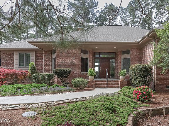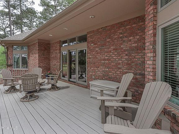 Exceptional location in desirable Pinewild County Club, a gated community less than two miles from the Historic Village of Pinehurst. You will not find better views!! The positioning of the home provides 180-degree vistas of the POND and the 11th, 12th and 13th Holes of the (Gary Player designed ) Holly Course from all the main living areas, the balcony, the screened porch as well as seating areas on the ground level patio. This stunning, all brick, Custom home features high end appointments including quartz, marble and granite countertops, beautiful hardwood floors, recessed lighting, whole house generator and more. Large two bay garage boasts a depth of 18feet with a separate Golf Cart garage. Second golf cart garage or workshop on lower level. Roof has been replaced in the past 3 years. Pinewild Country Club has 48 holes of golf including a 3-hole practice course, swimming, pickleball, and more. As an amenity of the HOA, enjoy Lake Pinewild, a picturesque 25 acres that's perfect for kayaking, fishing or just enjoying some time on the water. Now is the time to make the move to an exceptional lifestyle in an exceptional home!!