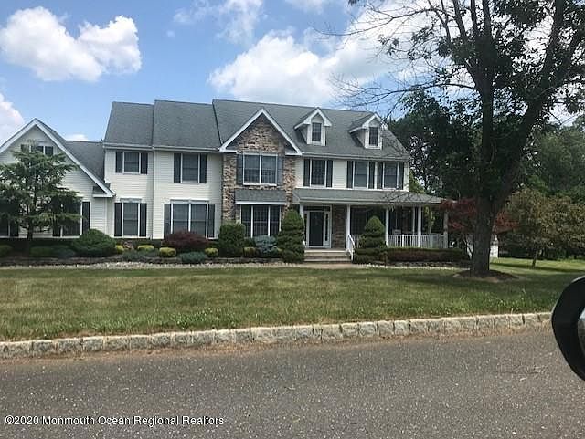 Galloping Hills is one of the most requested neighborhoods in Millstone! This 4 bedroom light filled colonial has an open floor plan with high ceilings-hardwood floors there is a bonus room on first floor possibly inlaws or guest room-Family room w/FP overlooks large kitchen which offers island w/granite counters stainless appliances-42 cabinetry while over looking large stone patio leading to inground pool w/patio and expansive yard- can add barn or additional garage-or volleyball/tennis courts Downstairs there is finished basement w/game area-separate room w gym Upstairs there are 4 spacious bedrooms w /3 baths-good size closets great neighborhood for commuters-buses and turnpike are located closely.