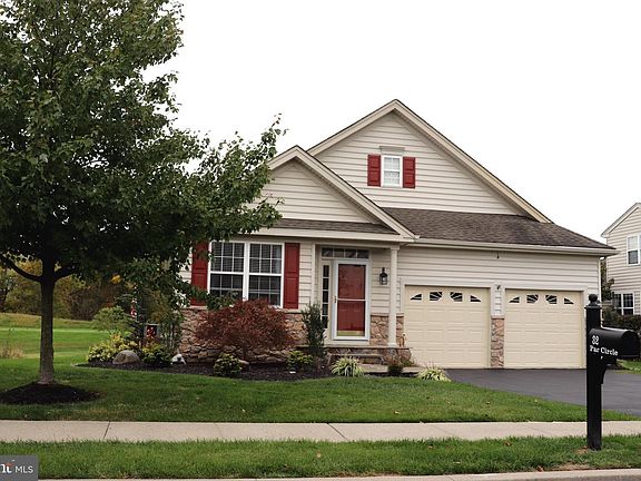 If you ever dreamed of living on a golf course, this home could be yours. The location is superior as it is located on a cul-de-sac street and the side of the home has a view of the golf course and open space. This two bedroom, two bath home has Hardwood Floors, first floor office, living room- dining room combo with picture molding and crown molding. Kitchen is open to the family room and has stainless steel appliances tile surround, island with breakfast bar and beverage refrigerator. Family room with cathedral ceiling, recessed lighting and gas fireplace with stone hearth. Main bedroom with walk-in closet, en suite with shower stall and Jacuzzi tub. Second bedroom is serviced by hall bath and laundry room has a utility sink and built-in cabinets. There is a two car garage and full basement with outside exit. What most people fall in love with is the enclosed porch overlooking the 2nd hole of Ravens Claw Golf Course. It also has a side patio with a gate leading to the backyard. This would be a dream home for many people given its condition and location. Less than 5 minutes to Rt 422 and the outlets. Hard to believe you are even in a community with this location!