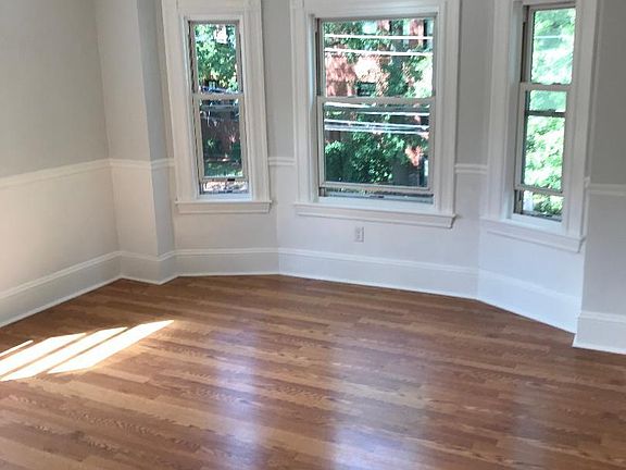 Beautifully restored with attention to energy efficiency. 3 bedroom 2nd floor apartment with condo level restoration just completed. Hard wood flooring throughout. Energy efficient windows with lots of natural light. Large closets. Lovely large back grassed yard with gardens. Washer/dryer in unit. Granite kitchen and bath that are bright and airy. 2-3 car parking. Great location. Avail 9/1. Call owner-no fee 1 year lease with first and last mos. rent