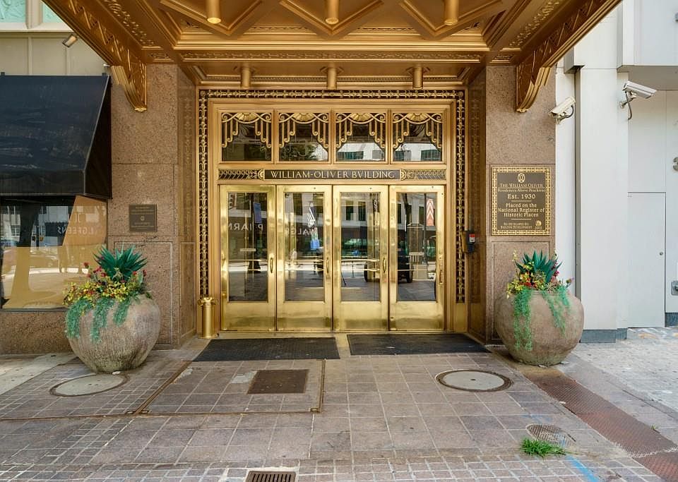 Welcome to the historic William Oliver building. Located in the heart of downtown Atlanta close to all of the most popular attractions, Philips Arena, Mercedes Benz Stadium, restaurants, shopping and public transportation and the Georgia State Campus. This two bedroom boasts high ceilings, open concept floor plan and large windows which bring in tons of natural light. The primary bedroom features an ensuite bathroom and large closest. The secondary bedroom is large and could also be used as an office/flex space. Kitchen is open to living room with lots of counter space and a breakfast bar. There is a laundry room conveniently located off of the kitchen. The building amenities feature a full time concierge at the front desk, fitness center, business center, bike storage and the most incredible rooftop with kitchen facilities for events! This condo comes with it's own storage unit.