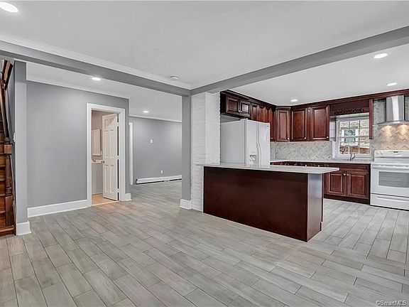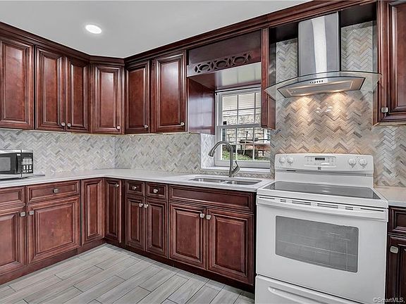 Enjoy the perks of living in one of CT's best communities at an affordable price. Taxes are under $3,400! The first level features a brand new kitchen with tons of natural light, quartz countertops and accented with a herringbone backsplash. The kitchen opens into the dining area big enough to accommodate friends and family gatherings. Around the corner you will find a comfortable area to relax and unwind. There is a fully updated full bath with rainfall shower head, glass shower doors, and marble ceiling accent. New flooring and a laundry/mudroom complete the first floor. The second floor has another open area to enjoy as a sitting room, home office, or second family room. There are three bedrooms, all with hardwood flooring and another full bath on this level. Right outside the door is a covered front porch perfect for enjoying the scenery. The attic offers great storage or can be converted to use as you please. The back of the home is great for entertaining, is fully fenced and has a very large shed with electricity. You will appreciate the love this home has seen and will want to call it your own! Right on the boarder of NY, conveniently located close to I-95, Merrit Parkway, Metro North Train, Westchester Airport, shopping, restaurants, parks, and more.