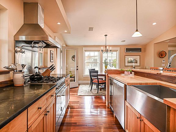 Extraordinarily Charming Home in South Portland! Located in the sought-after area of Sunset Park just moments from I-295, this 3BR/2BA, 1,700+ sqft property emanates whimsical vibes with cottage-inspired architecture, beautiful exterior siding, a custom paver walkway, and a neatly manicured 7,400+ sqft lot. Built in 1936 and impressively updated over the years, the home seamlessly combines antiquated touches with modern amenities. Explore the immaculately maintained interior to discover gorgeous cherry flooring throughout, overflowing natural light, an attractive color scheme, a tranquil 3-seasons sunroom w/ backyard views, vaulted ceilings, and a spacious family room with custom built-ins and a gas fireplace. Renovated with entertaining in mind, the open concept gourmet kitchen features stainless-steel appliances, an exceptional bird's eye maple breakfast buffet, lovely maple cabinets, quartz and butcher block countertops, gas stove w/ pot filler, wine refrigerator, stainless-steel farmhouse sink, dishwasher, breakfast area, a skylight, and an adjoining living room (both with surround sound). Three generously sized bedrooms and a renovated full bathroom are nestled on the upper-level, while the lower-level ensures comfort and versatility with a remodeled full bathroom. Other features: attached 1-car garage, main-level laundry, mudroom, mini-split heat and A/C, security system, fenced-in backyard, near shopping and dining, and so much more! Call now for a tour!