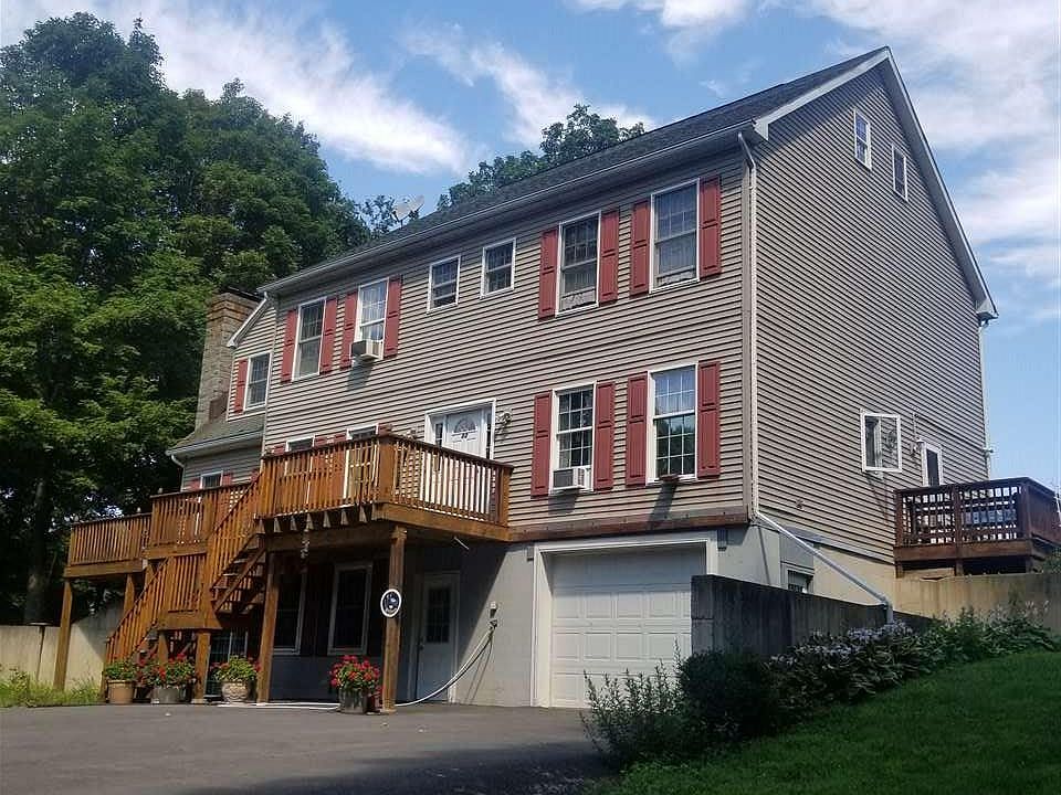 Come take a look at this beautiful home tucked away on a private well maintained road .If you are looking for lots of space and privacy this is the home for you. The possibilities are endless . The lower level has plenty of space for in home office or studio. Wrap around deck with some built in seating perfect for entertaining. 1 car garage under home as well as 3 car garage and one car garage on property. 2 oil tanks and generator. Septic was cleaned out a few months ago. Taxes and sg ft per buyers agent