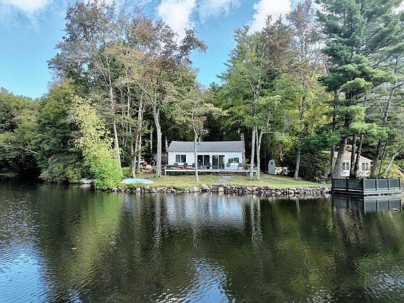 Charming lakeside cottage, in a fabulous location, on beautiful and desirable Pine Island Lake. Escape to the tranquility of this seasonal cottage nestled on the far north side of the lake. This cozy retreat offers the perfect getaway for those seeking peace, nature and relaxation. Step out on to your deck and take in breathtaking water views. Enjoy easy access to swimming, kayaking, and fishing right from your door. This cottage has 2 bedrooms, a spacious kitchen, full bath and a large living room with stone fireplace. Separate bunkhouse with 2 beds. Private well and septic. It shares the private road with only one other cottage. It offers privacy and a serene setting for your getaway. An ideal place for a romantic getaway or a peaceful retreat. Just a short drive to Northampton for dining, shopping and entertainment. Whether you are looking for adventure or relaxation, this hidden gem has everything you need. Offer deadline Sunday Oct 13th at 4 pm.