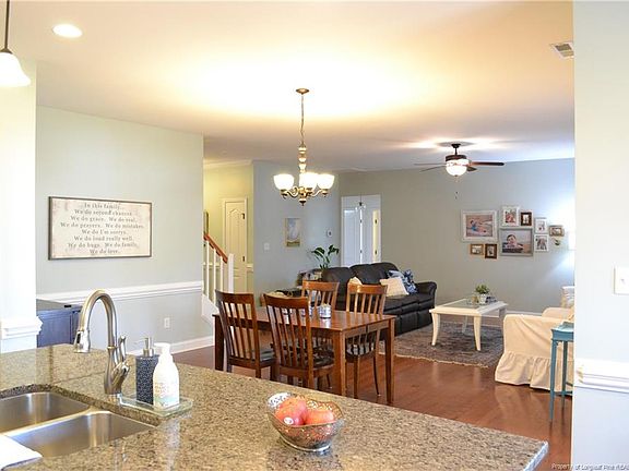 Lovely home located in Twin Creeks of Anderson Creek Club. Very open floor plan, ideal for entertaining or just spending time with the family. 9ft ceilings throughout with Hardwoods & cozy Gas fireplace. The beautiful kitchen has a large island, granite countertops, Stainless appliances with gas range & french door style refrigerator, pantry & breakfast area. Master and two bedrooms on main floor and separate guest quarters upstairs w/bedroom, closet & full bath. Master bedroom has walk in closet & trey ceiling. Granite counter tops in master bath, garden tub and tiled shower. Laundry room with folding table, drop zone for coats & shoes, Screened porch, patio & fenced back yard. Enjoy resort style living year round in a gated golf course community with pools, gym, walking trails, tennis courts, lakes for canoeing, paddle boats or fishing. Gated community with onsite restaurants & schools. 25 minutes to Fort Bragg, Sanford or Lillington and an hour to Raleigh.
