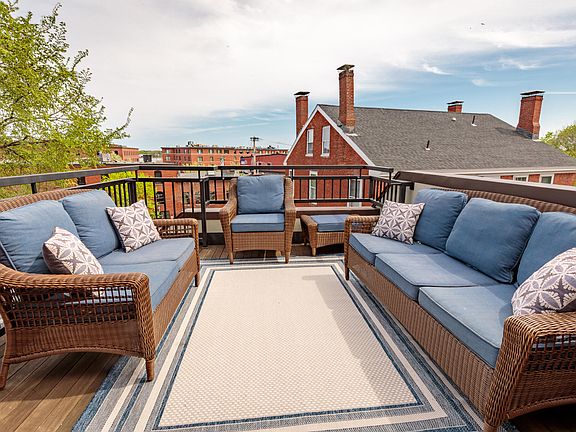 One of the most charming, stylish and architecturally distinctive condos on the Peninsula! A gem! This meticulously renovated, c.1818 brick building houses a smashing 1 bedroom, 1 bath condo on the top two floors. Gorgeous kitchen, cozy living room, spacious top-floor bedroom. Wood plank flooring, exposed bricks and beams grace the spaces, and the thoughtful, complete renovation provides all new windows, skylights, wiring and plumbing throughout the building. The cherry kitchen cabinets harmonize with the antique bricks and beams, and new appliances outfit the space perfectly. From the kitchen, glass doors open to a fabulous and sizable deck - a terrific perch from which to enjoy peeks of the Harbor and the wonderful, shared garden and patio below. A parking space alongside the building is dedicated to the unit, and there is storage in the basement. A strong Association has maintained systems and common spaces in lovely fashion. Pleasant Street is a desired location, offering proximity to the many restaurants, shops and cultural attractions that characterize the Portland Peninsula. A must see, and a must have!!