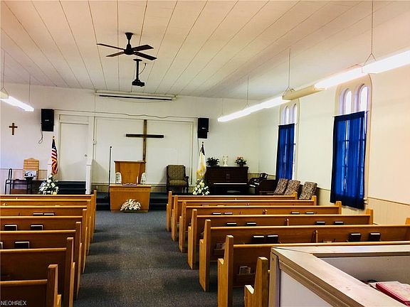 Whether your dream is to serve the community with a house of worship or complete an HGTV style renovation to make this 4,137 sq ft church your dream home (think Chip and Joanna Gaines from Fixer Upper) The possibilities are as endless as your imagination! Currently the first floor houses the sanctuary, classroom, 2 offices and a bathroom. The lower level has the fully applianced kitchen, fellowship hall, toddler room, 2 bathrooms, storage rooms and a sprinkler system. A 10x12 shed holds the included lawn mower. All contents remain. Call today to tour and buy this piece of Wakeman history!