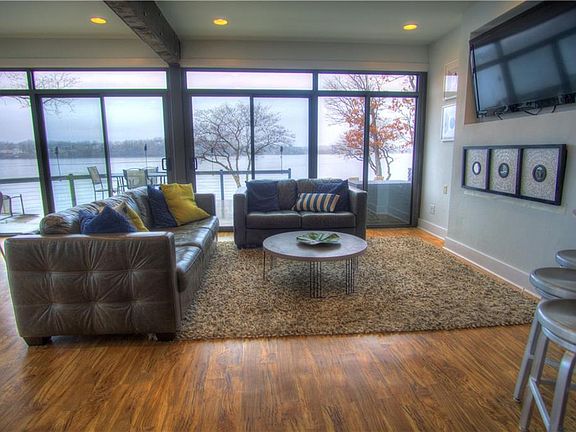 A view that must be seen to believe. Looking out over 145 feet of lake front, this home offers stunning views from inside, deck-side, or pool-side. The large wrap-around deck offers plenty of room for relaxing or entertaining. Cool off with a swim in the in-ground pool. Walking in the front door gives a hint of the unique lake-living experience that lies within. Wide floating staircases lead to four bedrooms with three baths. Two of the four bedrooms feature private baths. The open living and dining areas are complemented by a spacious kitchen and separate bar area. Bar is equipped with an ice maker and wine coolers. A half bath is conveniently located close to the deck and pool. Located on 9-mile marker at the end of Horseshoe Bend road, you are just minutes away from some of the best dining and shopping the lake has to offer. Did I mentioned that the home comes completely furnished - just bring your toothbrush. With plenty of room for family and friends, this home is a must see!