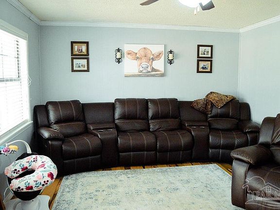 Goodway Community!! Situated on over 3.5 acres, this homestead offers a peaceful country setting. With over 1700sf, you will find all you need in this 4 bedroom/2 bath home. This property has been updated throughout, and has a wonderful split floor plan. You will fall in love with the large master suite that includes an impressive walk-in closet and large master bathroom. The family sized laundry room is off the master and easily accessible from the rest of the home. The property has a single carport on rear of home. There is a storage shed for tools, toys, or lawn equipment. Relax by the fire pit and enjoy the serenity and beauty of this awesome property and location. Close to Pensacola and Gulf of Mexico beaches, JU Blacksher school district, and quick access to I-65- don't miss out on this wonderful home. Come and experience the charm of this quaint country home today!
