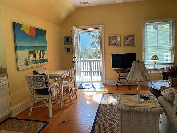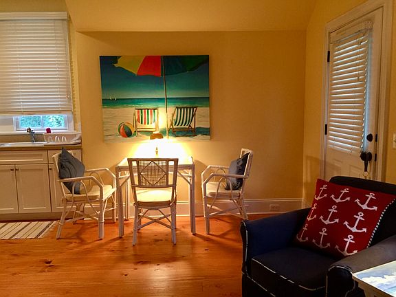 This is a carriage house/FROG (For Rent Over Garage) in Habersham* - the award-winning low-country community with outdoor pool, tennis, BP, dock, parks, walk to restaurants and shops. The FROG is completely furnished with beach decor, a separate bedroom ( Q-bed) full bath, full kitchen appliances, pine hardwood floors, a built-in bookcase, pocket doors. The patio with garden fountain provides an outdoor shady space in a very safe and quiet neighborhood. The FROG is within 500 ft of two parks. All utilities are included in the rental price including WiFi, TV streaming with YouTube TV, and garbage pick up. The lease can be flexible- one-month minimum. *Habersham is known for being meticulously cared for, from its preservation efforts to its fauna and flora and all around authentic Lowcountry aesthetics. Rent and $1,000 refundable deposit are due at signing plus a $125 cleaning fee, AND All utilities are included plus WIFI, TV streaming/Netflix, Amazon, YouTubeTV. Preferably a year's lease, but with a 30-day notice in writing, it can be as short as one month! Pine floors, pocket doors, patio with a fountain in the garden in peaceful, quiet nature.