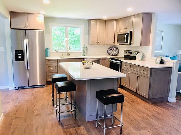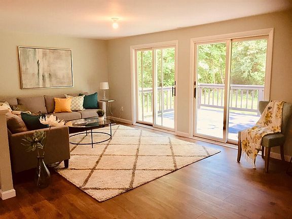 Enjoy single-level living at its finest in this extensively renovated 3-bedroom ranch with master full bath, two half baths, 1-car garage and abundant natural light. The stunning new kitchen features gray cabinets, quartz countertops, stainless steel appliances, built-in microwave and thoughtfully designed island with banquet seating. There is also a gracious dining room and sun-filled family room offering spectacular views of the private deck and large, level yard. Additional improvements include a new roof, doors, luxury vinyl plank flooring, central air, 200-amp electrical service, on-demand water heater, attic insulation, exterior & interior painting throughout & much more. Natural gas, town water & sewer. Close proximity to highways, shopping and services.