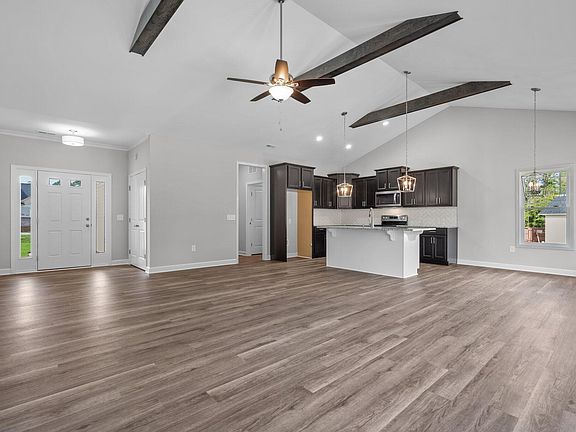 Your Dream Home Awaits in Charming Angier! Welcome to your dream home in the picturesque town of Angier, just minutes away from Campbell University! This stunning ranch-style floor plan offers 3 bedrooms and 2 bathrooms, designed for both comfortable living and entertaining. Step inside to discover an inviting open-concept living space, highlighted by beautiful wood beams that add a touch of rustic elegance.The spacious kitchen, complete with a cozy breakfast nook, is perfect for morning gatherings and culinary adventures. Unwind in the large master bedroom featuring a luxurious ensuite with a tile shower and a generous walk-in closet. Enjoy the convenience of a walk-in laundry room, making household chores a breeze. Relax on the covered porch, overlooking the gorgeous large lot, providing a serene escape from the hustle and bustle of daily life. This home offers the perfect blend of tranquility and modern features. Don't miss your chance to own this beautiful property in Angier.