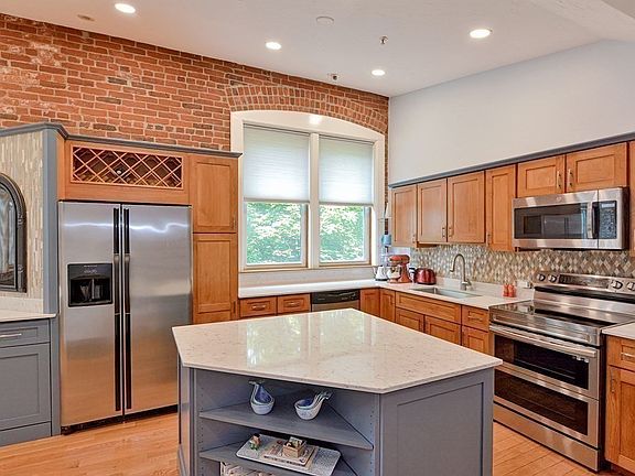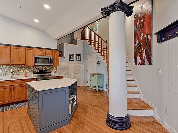 This stylish condo is located a short walk from Worcester Academy, Polar Park, Union Station, restaurants, shops & more. Inside you'll love the exposed brick walls, open floor plan, 12 ft. ceilings, xl arched windows, fresh paint, upgraded kitchen cabinets, new wood floors, quartz counter tops, new single/double oven & new gas fireplace with tile surround. This is a remarkable kitchen/dining area! Then just up a few stairs up to a cozy lofted living area. Completely the 1st Fl is newly installed led wafer recessed lights and ½ bath. Continuing to the 2nd Fl, you’ll view a picturesque original mural adorning the ceiling, laundry, 3 BDRM, 2 full baths & an additional loft space via a spiral staircase in the 3rd BDRM. The primary BDRM provides a private bath and charming built-in storage, a 2nd closet and will easily fit a king bed. Central A/C, water heater 2019, 2 parking spaces and separate 8x8 secured storage with shelving is within the building. Convenient highway access.