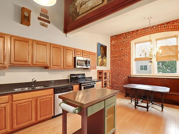 Welcome to this unique condo unit inside a stunning brick building, converted in 2005, for sale by the original owner! Inside you'll find a large open kitchen with island, & high ceilings with 100 year old original fresco paintings of the Worcester wilderness. The living room has built-in shelving with cabinets for extra storage, & oversized windows surrounded by exposed brick. Upstairs you'll find 2 large bedrooms with floor-to-ceiling windows, topped with beautiful fan glass, & full en-suite bathrooms! Large closets, ceiling fans, & more exposed brick. Laundry is on the bedroom level for maximum convenience. This unit also boasts many heritage features to be discovered! 2-deeded parking spaces, with extra parking for your guests, & a private locked storage unit in the basement. Fully fenced in backyard perfect for letting the dogs outside. Nearby to restaurants, nightlife & the new entertainment center by Green St & Kelly Square! Great highway access too!
