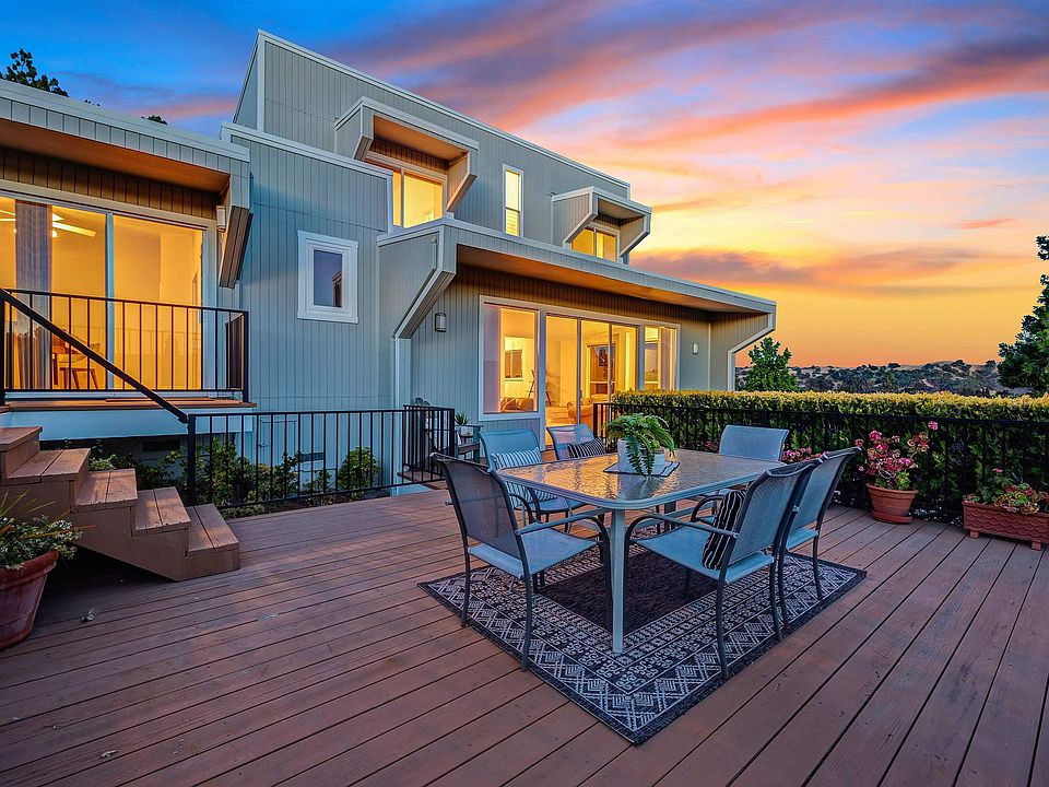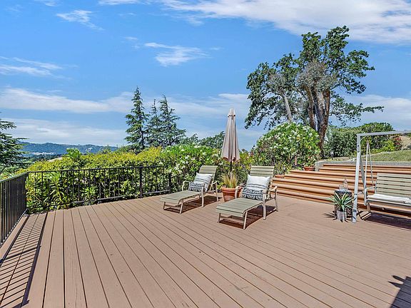 Nestled upon a rare 0.32-acre canvas amidst panoramic view of San Ramon Valley and surrounding hills, this majestic 2,843 sq. ft. residence is a rare find. Well-built using only the finest material, this custom-built home features 5 bedrooms, 3 bathrooms, 1 large-sized office, exterior entertainment decks, and level lawn area atop a knoll setting. The home offers bright and spacious living spaces with soaring vaulted ceilings and beautiful views. Prepare to be inspired by the gorgeous eat-in chef's kitchen with custom-built cabinetry, Corian counters, stainless steel appliances, and plenty of space for storage. Adjacent to the gourmet kitchen, the dining room comes with a wet bar and has a large window. Unwind in your sunlit haven or entertain family and friends: a serene open-concept living/family room with soaring vaulted ceilings, a deck, and breathtakingly tranquil views. The epic primary suite boasts a vaulted ceiling, a private terrace leading into the backyard, and soothing views. The large office/bonus room downstairs offers plenty of space to get creatively messy or work from home. Two sets of Jack & Jill bedrooms are located upstairs and come with views and complete privacy. New roof (1.5 years old), transferable warranty to 2042.