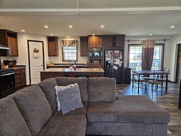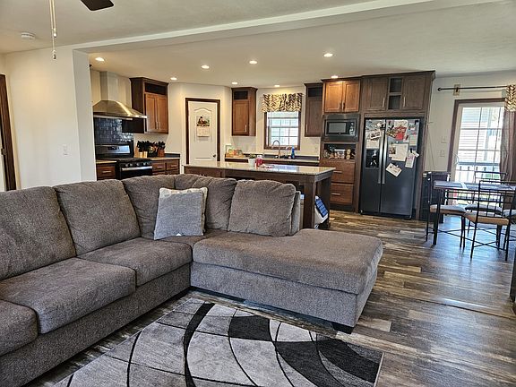 Welcome to Punky Lane! Make this 1493 sq. foot Titan your new home. It offers 3 spacious bedrooms and 2 baths. There is a large, open kitchen/living room/dining room area. The kitchen features a ceramic backsplash, beautiful hardwood cabinet doors, a center island and granite countertops. Appliances include a black stainless refrigerator, matching dishwasher, built in microwave, and gas range with a stainless steel range hood. The large primary bedroom suite is complete with a walk-in closet. Come take a look today. Sale subject to park approval. Motivated seller!