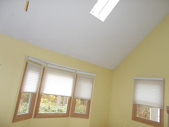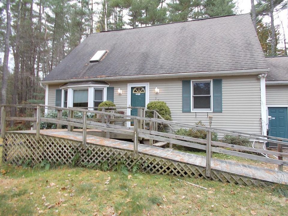 Spacious home is in great shape & offering space & privacy. Living room has built-in surround sound along with a built-in fireplace. Skylights let in extra light! French doors lead in to the kitchen area, complete with an island for added storage. First floor bedroom could be a perfect office. Nice deck off the kitchen looks into the woods so plenty of privacy! Added bonus of a garage to park during those upcoming snowstorms. This home should be on your list to see! Subject to short sale approval.