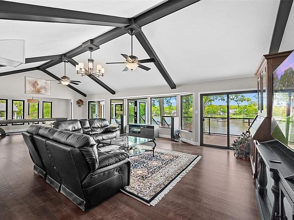 Enjoy spectacular, panoramic, waterfront views from this 5 BD, 3 BA, open ranch in Lake St. Louis. Featuring a gourmet Kitchen, huge Great Rm with vltd clngs and beams, a Sunroom overlooking the lake, main flr Office, finished W/O lower level, composite deck, stamped patio w/outdoor Kitchen, newer dock and lift (2 yrs old) and more. With over 3,700 s/f of finished living space, this lakefront beauty will not disappoint! Features inc custom cabinets, granite c-tops, subway tile b-splash, SS appl, drawer micro, dbl wall oven, 2 dishwashers, gas c-top, bev center, 2 bev refrig, frml DR, projector and 110 inch drop down screen, wrought iron stair spindles, Mstr retreat w/sliding door to the deck, lux Mstr Bath, jetted tub, custom tile shower and W/I closets. The finished LL has a Flex Rm, 3 BD, shared bathroom, Fam Rm and large Flex/Rec Rm. There is approx 3736 s/f of finished living space in this amazing home. You must see this home to appreciate all it has to offer. Vacation every day! Additional Rooms: Sun Room