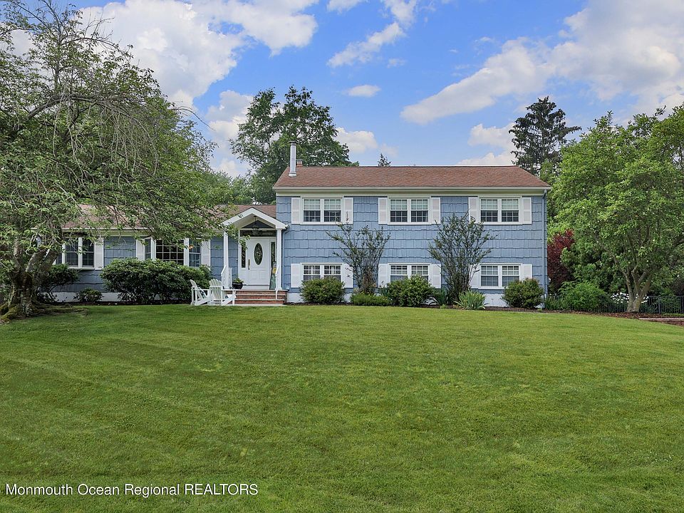 Have you been seeking a spacious colonial home with a heated saltwater pool, an open concept gourmet kitchen, and an expansive basement? Look no further! Located in the Middletown Township, this 4+BR/2.5BA, 2,692sqft property delightfully charms with attractive shaker siding, beautiful paver sidewalks, and a manicured 0.57-acre lot. Beaming with natural light, the interior impresses with an openly flowing layout, crown molding, gorgeous wood floors, sizeable living room, great room w/vaulted ceilings, and an open concept chef's kitchen featuring stainless-steel appliances and granite counters. Conveniently enclosed, the sprawling backyard boasts an inground heated saltwater swimming pool, a spa, a custom paver deck, and lush landscaping. Enjoy relaxation in the large primary bedroom with a walk-in closet and an en suite. Other features: 2-car garage, laundry area, rec room, family room, near shops and schools, and more!