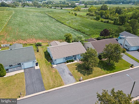 Don't miss this three bedroom rancher in the quiet Muddy Creek Village with beautiful farm views! Convenient one floor living, multiple accessibility features, covered back patio, and fenced-in backyard. Plenty of workable space and storage in the full basement. Step inside to discover recently updated flooring, new paint, newer central air & HVAC systems, a new roof and plenty of living space. The large dine-in kitchen offers plenty of storage in cabinets and closets, and adjacent to the kitchen is a third bedroom with loads of natural light and a beautiful view of the farm behind the property (the third bedroom is currently being used as a sunroom/office.) Through the primary suite is a large full bathroom with a pocket door and a roll-in shower and roll-under vanity, and the bedroom to the rear of the house offers a large walk-in closet and plenty of space. The roof has been recently replaced and the attached garage has one parking space with the asphalt driveway offering space for 1-2 additional cars. Make this wonderful home your own! Explore the virtual tour and floor plans at the end of the photos. Be sure to schedule a showing today, showings start Friday August 18th.