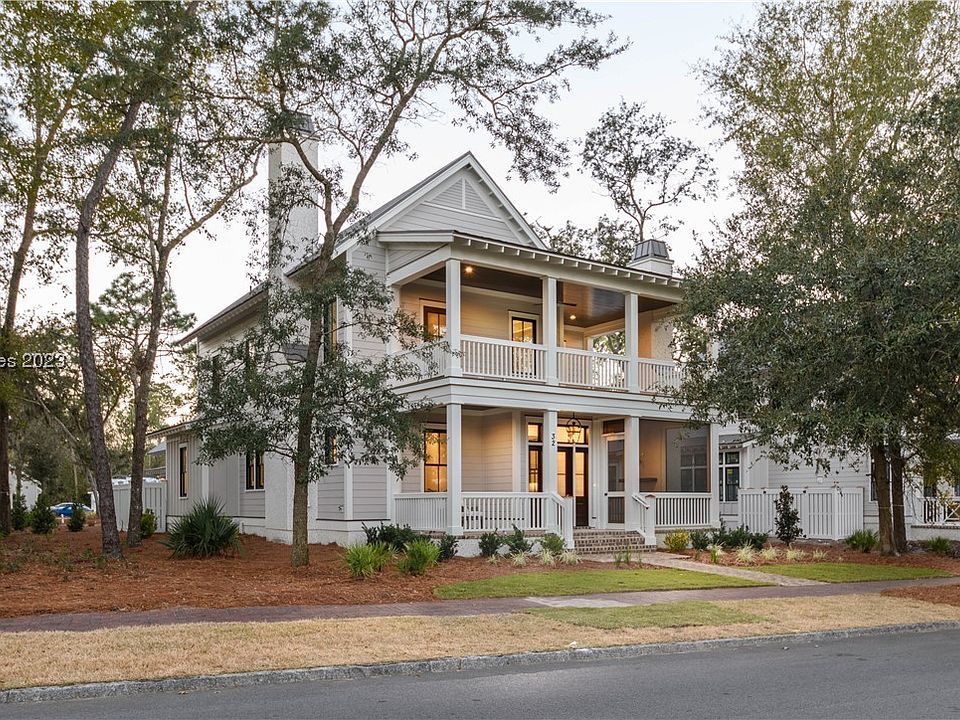 32 Red Knot Road is a newly completed 3,250-square-foot home in River Road. Inspired by historic Beaufort architecture, this five-bedroom, four-and-one-half bath home by Front Light features authentic Lowcountry details such as a metal roof, exposed rafter tails, and tabby foundation and a functional floor plan with open-plan living, ensuite bedrooms, flex space, and multiple porches. Located between Wilson and Moreland Villages, River Road is home to a community garden, Cove Park, and the members-only Lodge with fitness, lounge area, playground, dog park, and zero-entry pool overlooking the inland waterway.