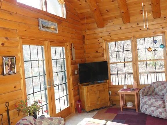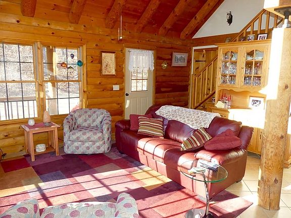 Feel like you are on vacation everyday in this breath-taking, sun filled log home set on 2 1/3 private acres, yet close to highways and 1/2 mile from town beach! The kitchen has granite counters, stainless steel appliances and center island and the wood burning stove is the perfect alternate heat source with an open floor plan and cathedral ceiling. The first floor also has a bedroom, full bath, laundry room, and patio doors leading to the covered wrap around deck. The second floor has sitting area, a second bedroom and full bath. The finished walkout basement can be used as an in-law or teen suite which has a full kitchen with stainless steel appliances, recessed lighting, living room, large bedroom, full bath, second laundry area and is heated/cooled with a ductless mini split. Also has central vac and water softener. The 2 car garage is oversized for your car, boat and snow toys! Come and see this fabulous property!