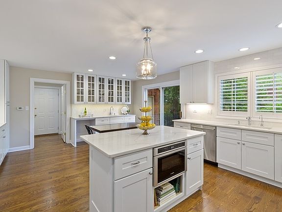Absolutely beautiful home is idyllic location of Regent Wood! Freshly remodeled with large rooms and light galore! Large open floorplan with Living Room, Dining Room and Family Room. Exceptionally renovated eat-in kitchen with white cabinets, quartz counters, marble details and new stainless steel appliances. Elegant Library with custom built-in cabinetry. First floor Master Bedroom with sweeping views and completely remodeled Master Bath with walk-in tub. Two more bedrooms and remodeled bath on second floor plus a loft seating area overlooking the Living Room below. A fully finished basement with additional bedroom/office and huge storage room. Beautiful outdoor terrace and gardens and access to the outdoors in almost every room! Approximately 3,305 sq. ft. above ground and 2,035 sq. ft. below ground. Taxes for 2019 $18,356. Assessments $682.65/mo.