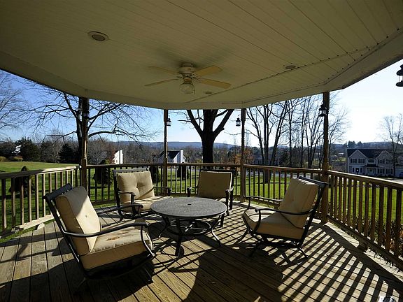 This Classic 3+ bedroom New England Colonial anxiously awaits the new owner with an inviting sun drenched curb appeal. Highlighted by a spacious porch w/countryside picturesque views. The tasteful granite/ss kitchen/dinette attach to a large family room and form the core of the social & entertainment hub overlooking the rear deck/pool/yard. The spacious formal DR/LR blend perfectly with the entire open ceramic and hardwood floor plan. The second floor boasts 3 bedrooms including the spacious master bdr and glamorous bath suite. As a true bonus & accessible from the main level is a 600sf sun filled room above the garage for multiple use options. Currently in use for entertaining with a wet bar. A full unfinished walk out basement awaits the creative buyer while providing vast dry storage. The attached over sized no pole 2 car garage with tall 8ft (for the SUV) doors offer nice storage and convenience. Located on a cul de sac in a sought after commuter friendly neighborhood.