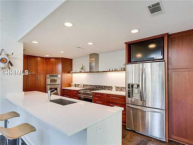 Newly remodeled. New roof (2019). Situated in one of Sea Pines' most special and private locations, this stunning single-level residence has been spectacularly-renovated ($250K+) and enjoys unparalleled golf and forest views in this one-of-a-kind setting! Offering an ideal integration of indoor & outdoor spaces, the home enjoys an open plan with living, dining, office, family & breakfast rooms, a superb all-new white-quartz chef's kitchen, 2 large owner suites with 3rd bedroom...plus gorgeous fenced pool w/outdoor shower, 3 patios, and 2-car garage. High-grade wood floors, walk in showers, 2 fireplaces, great storage & so much more! A must see home!