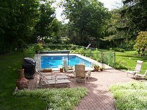 Three bedroom brick/vinyl home with so many wonderful updates including newer roof, hickory kitchen cabinetry with Corian countertop/breakfast bar and tiled floor, new windows, inground, heated pool with newer liner and concrete deck. Very open layout between kitchen, diningroom and livingroom. Woodburning fireplace with heatilator. New bathroom with jetted-tub, separate shower, and plenty of cabinetry. Central a/c and forced air furnace, newer hot water tank, walk-up attic and beautiful landscaping and gardens complete this deep lot.