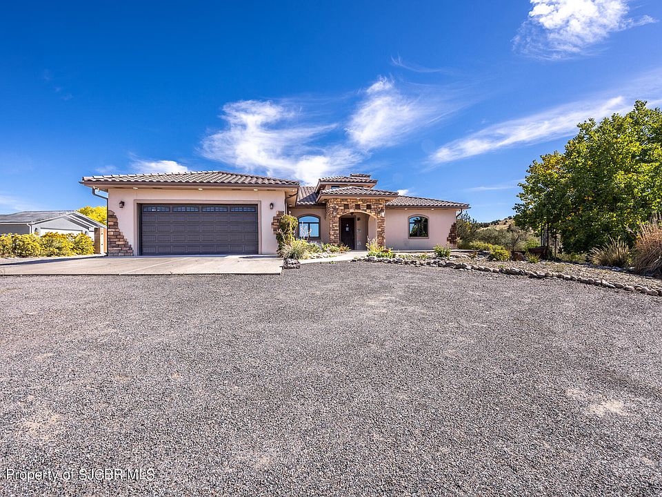 This home is beautifully custom built in a breathtaking neighborhood with gorgeous mountain views. It offers an open living concept and a split floor plan. There are 3 gas fireplaces and a wood burning fireplace outside to stay warm for the upcoming season. There is also spray foam insulation and in floor heat with four different zones for maximum efficiency. The beautiful granite and custom cabinets throughout give a gorgeous touch. The primary bedroom has its own access to the covered patio for added privacy. The home offers a hard-wired alarm system for security, RV parking, empty conduit for electricity access to different areas of the exterior, a beautiful water feature, and views for miles and miles away. You don't want to miss seeing this one-of-a-kind home.