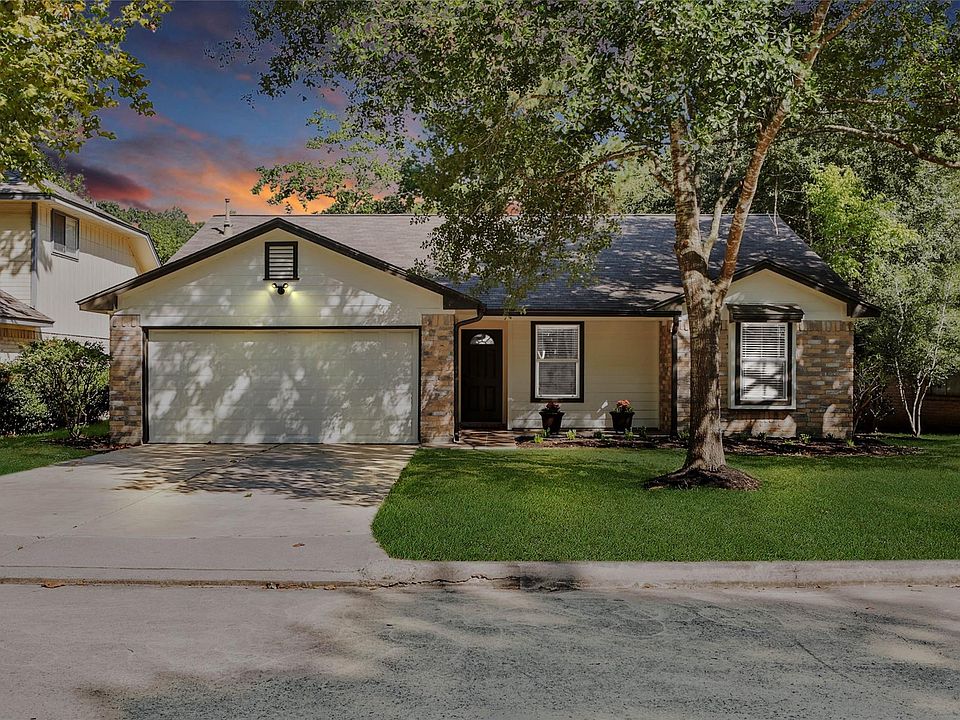 Come see this beautifully remodeled & updated home in the fantastic section of High Oaks in Grogans Mill of The Woodlands.The sellers removed a wall to open the kitchen space to the living & dining rooms, creating a more open, contiguous floor plan.Updates were quite extensive, including much of the drywall, windows & doors, flooring, cabinetry, countertops, light fixtures, & more. The kitchen is the focal point, with seating at the island, gas range, double oven, gorgeous white cabinetry, coffee bar, & a few nicely placed open shelves. Exposed & stained wood beams accent the neutral colors nicely. Gorgeous countertops throughout. The primary suite is complete with vaulted ceiling, soaking tub, spacious walk in shower with frameless glass surround(barn door type entry) double sinks, chandelier, & walk in closet. Even the secondary bathroom is model home quality with updated tile & vanity, newly replaced tub & frameless glass surround(with matching barn door like entry door). No Carpet!