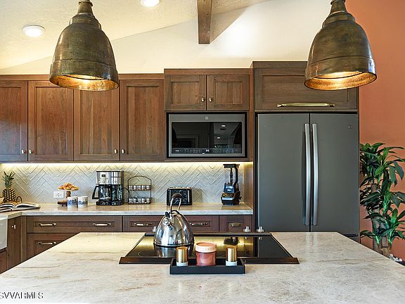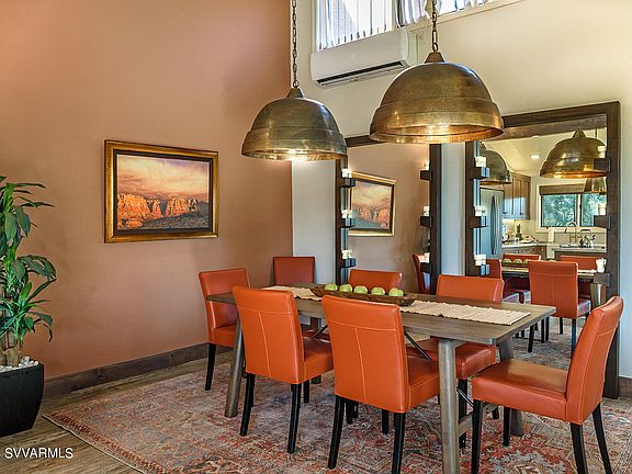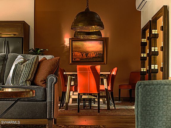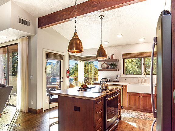 Nestled within the gated Canyon Mesa Country Club, this PROFESSIONALLY DESIGNED 3-bed, 3-bath, 3-fireplace end-unit townhouse offers the ultimate in LUXE LIVING. With 2,580 sf of elegantly renovated living space, indulge in stunning open concept living and Sedona's red rock & mesa views from its two spacious decks. Equally impressive is the main ensuite's spa-like bathroom and custom built-in closet. The lower-level family game room and covered deck provides extra entertainment space with a sleeping option. Being sold furnished, this turnkey short-term rental investment is a must-see for the discerning second-home buyer seeking both income potential and personal use. Currently an established short-term rental with rave reviews, future bookings and located near Sedona's premier amenities. PEACEFUL OUTDOOR LIVING SPACES await you on the two spacious decks, both open and covered. Enjoy al fresco dining under the starry skies in this designated INTERNATIONAL DARK SKY COMMUNITY! And enjoy relaxing with your favorite beverage on the shady covered deck on a sunny day!