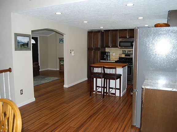 - Kit Dscrp: Main Level, Dining Area, Flooring - Hardwood, Countertops - Stone/Granite/Solid, Cabinets - Upgraded, Kitchen Island, Stainless Steel Appliances, Open Floor Plan, Remodeled, Gas Stove, Lighting - Overhead, Lighting - Pendant
