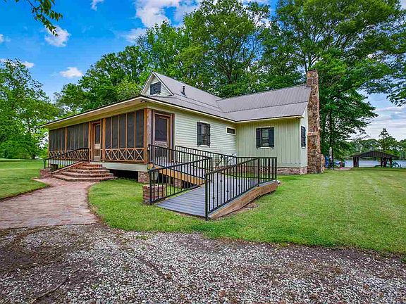 Incredible Custom 4BR/4.5BA Lodge nestled on Bee Lake in the Mississippi Delta. Nestled on 3.87 acres with front porch views of mature pecan trees and Delta farmland, and back porch views of beautiful Bee Lake. Includes covered boat slip w/concrete boat ramp, Trex composite fishing pier, dog run, brick patio, and large separate cook-house with adjoining workshop. Entering through the porch into the main house is an open floor plan with gourmet chef's kitchen including gas Wolf range, griddle and grill, professional grade vent hood, wet bar with dedicated ice machine and appointed sink, dishwasher, two garbage disposals in kitchen (three in house including laundry/utility room), warmer, double ovens, under-cabinet lighting, granite countertops, pot filler, kitchen island, raised bar with seating, and all stainless appliances. The kitchen opens-up to the living/dining combination great room anchored with a stone, wood-burning fireplace. Ceiling beams from repurposed antique wood compliment other appointments including accent antler chandelier and brick arches. Two of the bedrooms have a private entrance from the outside - one with an enclosed porch overlooking the front of the property and the other with a private balcony overlooking the lake. The Captain's Quarters has custom made iron doors, as do all the entrances, that open up to the back porch with sweeping views of the lake. The Master Bath offers jetted tub, separate shower with multiple shower heads, granite countertops and cypress cabinets. The floors in the master are even heated! Huge walk-in closet with built-in custom drawers and shelves. Other extras on the main floor include built-ins for additional refrigerators/coffee station; utility/laundry/office with deep sink and plenty of built-in storage, and linen closet. Come land your dream place on Bee Lake today!