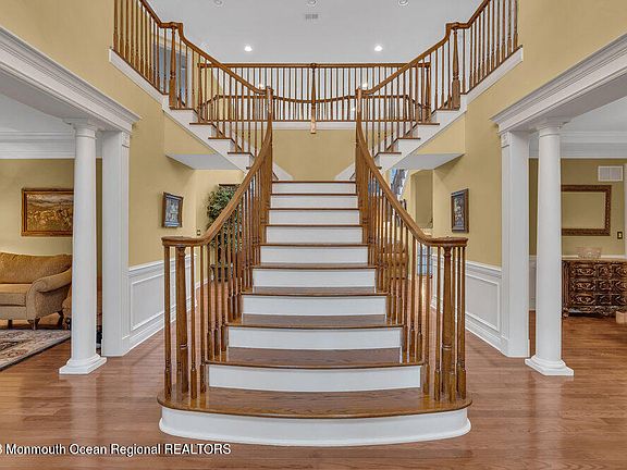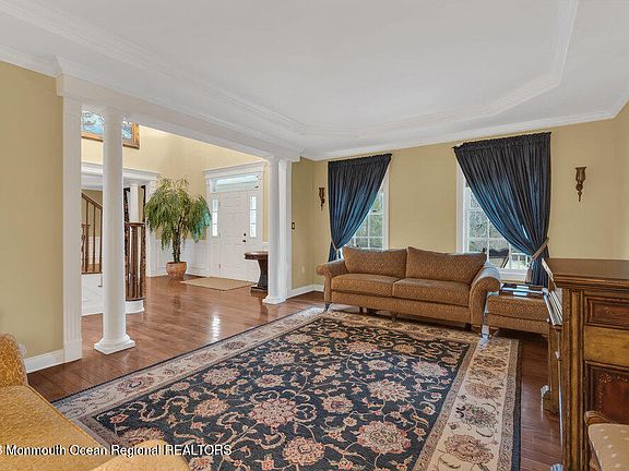 The highly sought Lexington Estates of Marlboro, is now offering this stunning 6 bed, 4.5 bath custom home w/ 3 levels of living + over 6k sqft. Greeted w/ stunning hardwood floors + grand staircase this home is everything you've been waiting for. Two story family room w/ gas fireplace, decorative molding + oversized picture windows that allow for tons of natural sunlight. Large kitchen overlooking size-able yard backed to woods. Take the back stairs to the 2nd level + find the immense sized owners suite; soaker tub, walk-in shower + his & hers vanities to complete the bathroom. Finished walk out basement w/ slider doors to ground level with bedroom, full bath + enormous open space. Equipped w/ generator, sprinkler + alarm system