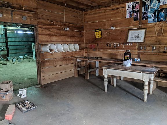 This 4 bedroom (shotgun), 2 full bath home sits on 30+ acres. It has an upstairs loft and an unfinished basement. Home has its own office. The metal tool shed has an enclosed work area. Home has its own chicken house. It has a lake located on it and multiple storage sheds for equipment. Lake is 30-45 feet deep and is stocked with bass. Also has a dock, boat ramp, and a shelter house for entertainment.