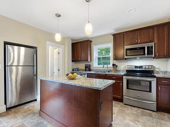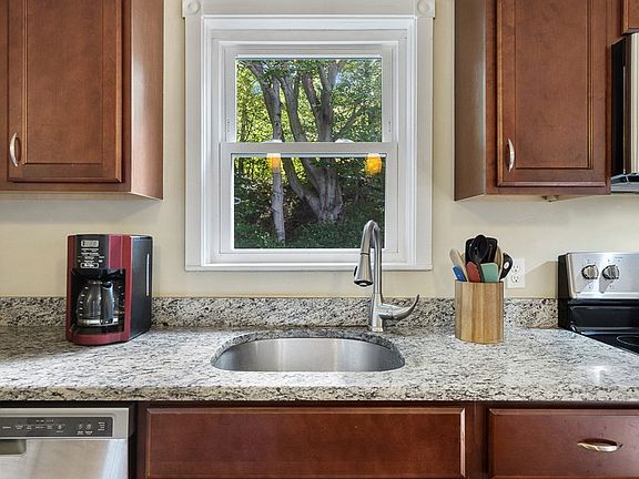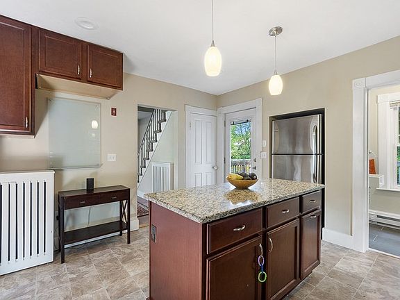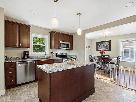 TURN KEY - Beautiful two bedroom, 1.5 bath Colonial with a wrap around covered porch and a 20x20 deck. Large eat-in kitchen / dining area with granite countertops, island with storage, SS appliances and an enormous custom built pantry. A sun filled living room features a window seat in the front bump out with extra storage! The half bathroom is tastefully designed with tile flooring and tiled accent wall. The bedrooms are generous in sized each with large closets. Super convenient 2nd floor laundry in the full bathroom. A full walk out basement lends itself to great storage and workshop area. This is a level corner lot featuring a fenced back yard and garden areas. Town water & sewer. Replacement windows. Newer boiler, oil tank, water heater, updated electrical (2015). Convenient location for commuting and schools. What a great condo alternative without the condo fees.